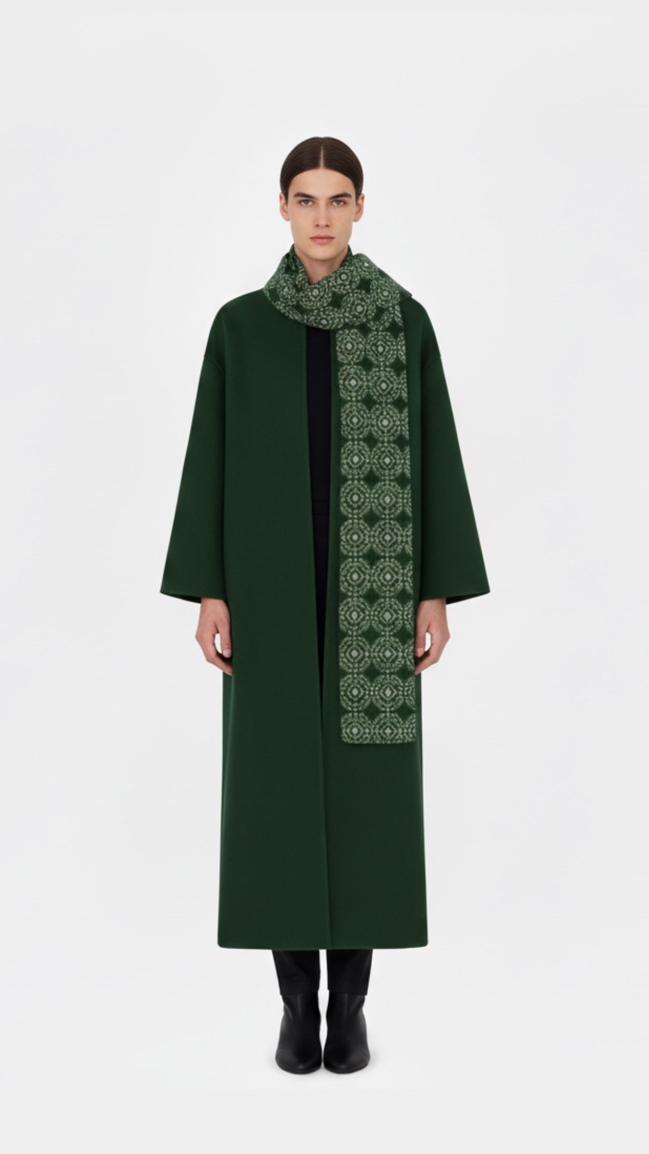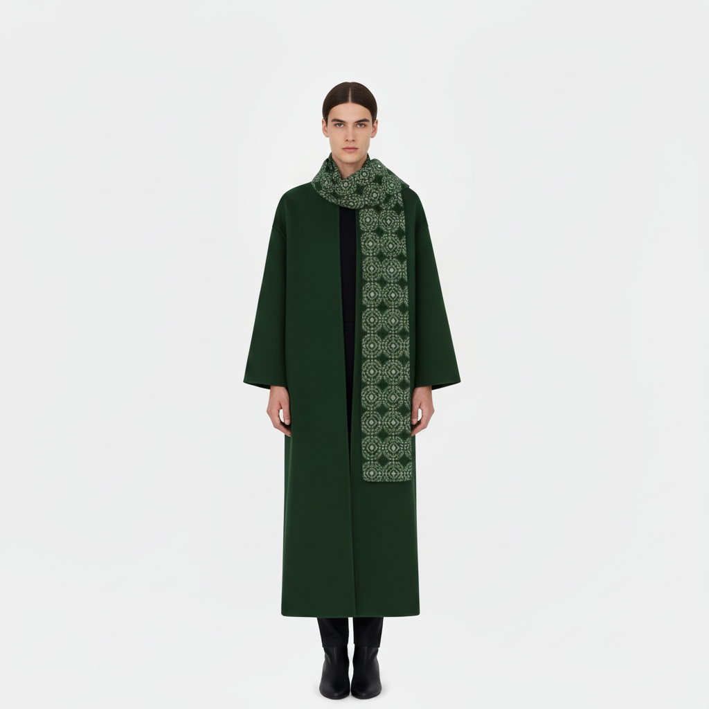 Dark Green Carmen Print Coat with Scarf Collar